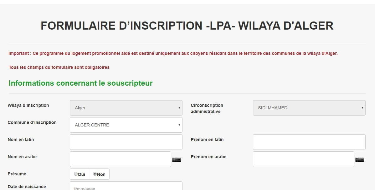 Pour vous inscrire au logement LPA ; rendez vous sur le site http://lpa.wilaya-alger.dz/