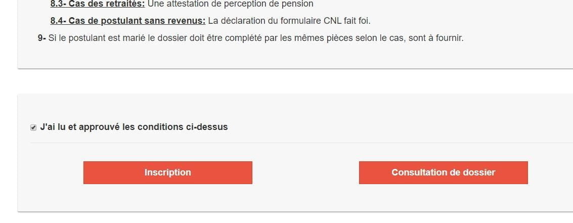 - Faites défilier la page du site, et cocher la case j’ai lu et approuvé les conditions ci-dessous, cliquez ensuite sur inscription
